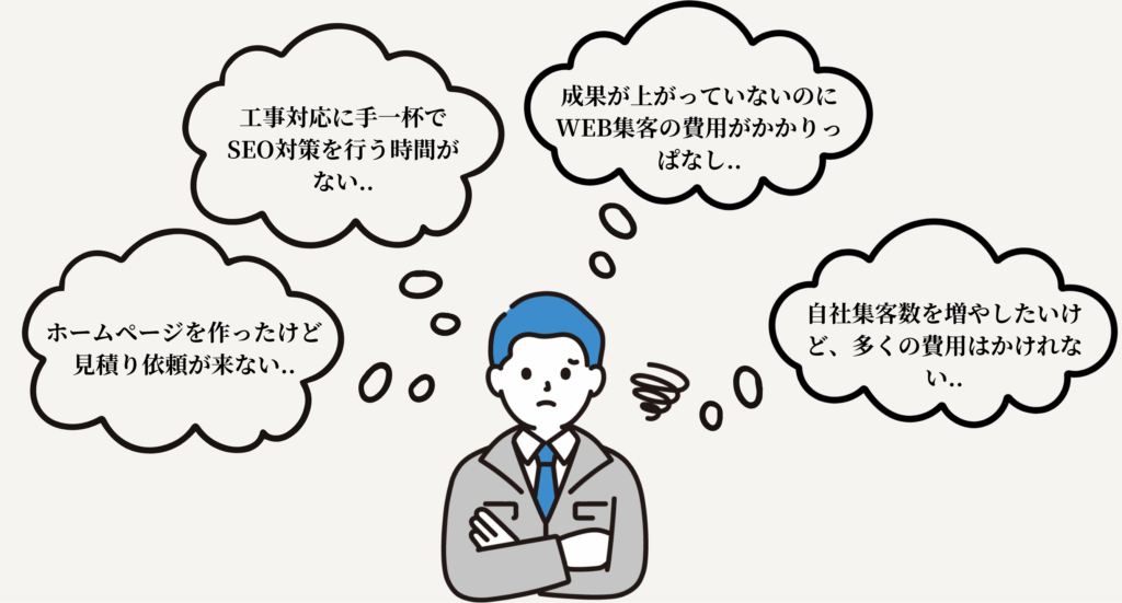 日々の現場の様子や施工実績、お客様アンケートがきちんと更新されていると、それだけで安心感・信頼感につながります。しかし、多くの会社では専属の担当者がいないため、更新が追いつかず、結果として反響アップにつながらないサイトが少なくありません。